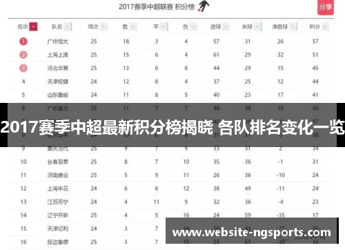 2017赛季的中超积分榜呈现出一定的波动,最显著的变化体现在前四名的激烈竞争。恒大、上港、国安等传统强队几乎全程保持着前列位置,但依旧未能避开竞争对手的猛烈追赶。最终,广州恒大在赛季末成功捍卫了自己的霸主地位,尽管他们的表现较前几个赛季有所下降,但依然凭借经验与实力稳定了联赛第一的位置。上海上港在这个赛季表现不凡,虽最终未能登顶,但仍牢牢占据第二的位置,证明了其作为新兴力量的崛起。
